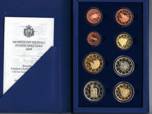 SAN MARINO ZECCA FONDO SPECCHIO IN EURO 2009 -8 VALORI- ASTUCCIO ORIGINALE - |
