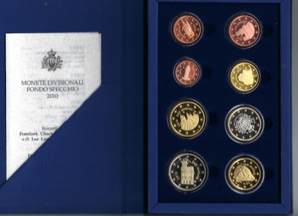 SAN MARINO SERIE ZECCA 8 VALORI FONDO SPECCHIO ANNO 2010 IN ASTUCCIO ORIGINALE |